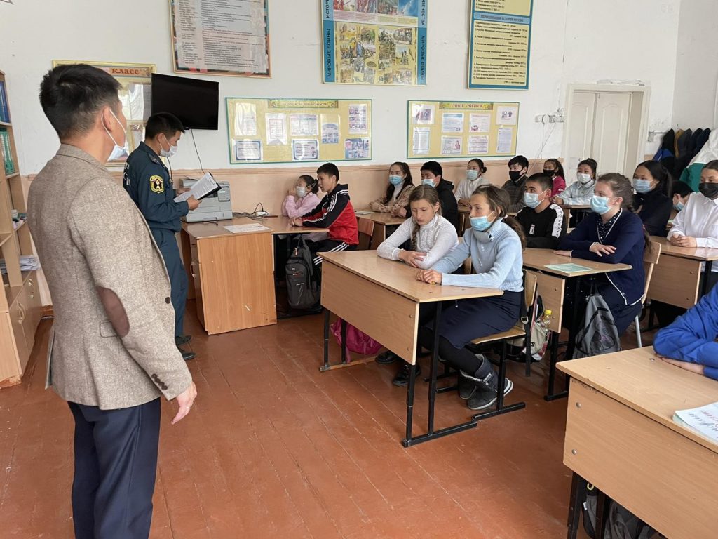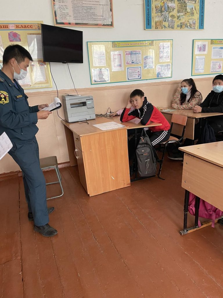 Ко Дню гражданской обороны была организована встреча с сотрудниками МЧС, заместителем начальника 13-ПСЧ капитан вн.сл.Чооду Т.М. и старшим инспектором государственного пожарного надзора старшим лейтенантом вн.сл.Оюн С.А.