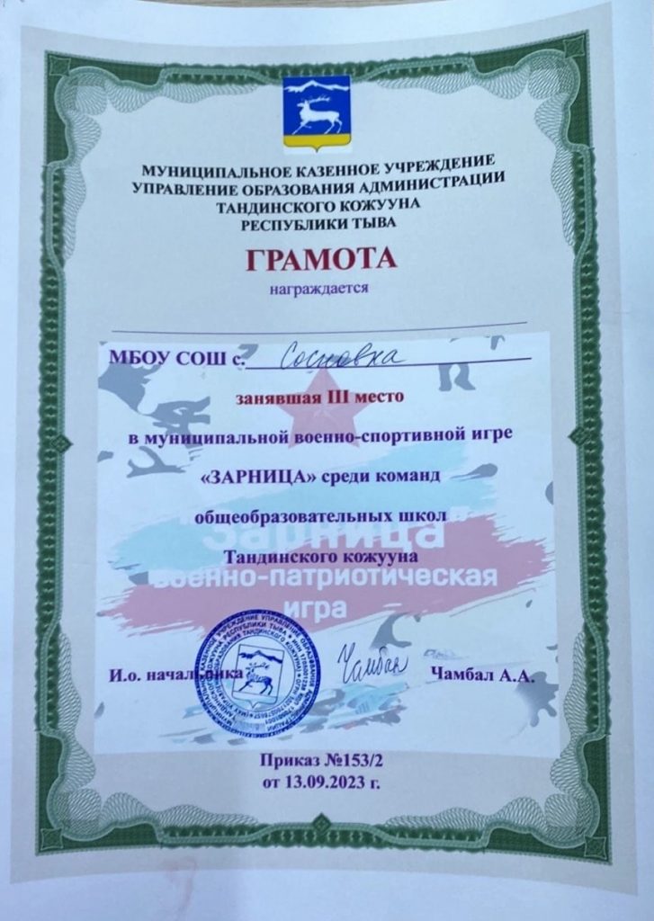 Без рубрики Учащиеся Сосновской школы приняли участие в муниципальном военно-спортивной игре «Зарница» среди команд школ Тандинского кожууна 11.01.2024 /