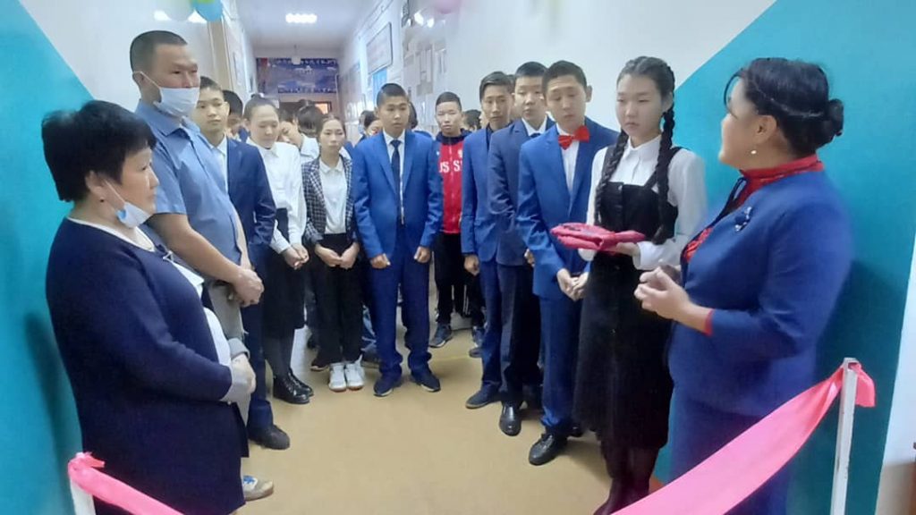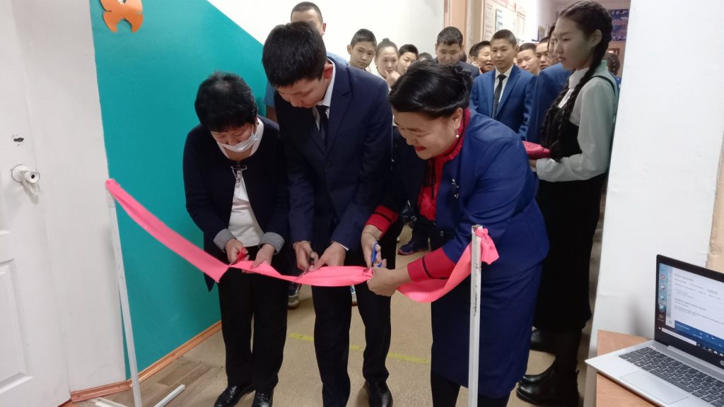 Почетное право разрезания традиционной ленты открытия целевой модели образовательной среды проекта «Цифровая образовательная среда» было представлено Главе Хурала представителей сумона Дургенский Дагба М.О., директору МБОУ СОШ с.Сосновка Оюн А.Ч. и учащему 10 класса Сыргашеву Богдану.